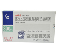 吉粒芬系基因重組的人粒細胞集落刺激因子(rhG-CSF)注射液,其有效成分是利用中國人G-CSF基因,由大腸桿菌表達的非糖基化蛋白質,由175個氨基酸殘基組成,具有與天然G-CSF相同的生物學特性。