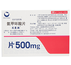 妥塞敏(氨甲環酸片)主要用于急性或慢性、局限性或全身性原發性纖維蛋白溶解亢進所致的各種出血。彌散性血管內凝血所致的繼發性高纖溶狀態,在未肝素化前,慎用本品。本品尚適用于:前列腺、尿道、肺、腦、子宮、腎上腺、甲狀腺、肝等富有纖溶酶原激活物臟器的外傷或手術出血;用作組織型纖溶酶原激活物(t-PA)、鏈激酶及尿激酶的拮抗物;人工流產、胎盤早期剝落、死胎和羊水栓塞引起的纖溶性出血;局部纖溶性增高的月經過多,眼前房出血及嚴重鼻出血; 溫馨提醒:廣大患者可以到康德樂大藥房(原:百濟藥房)購買藥物,我們在廣州、北京、上海、深圳、佛山、成都、武漢、珠海、杭州、湛江等中心城市建立了直營專科藥房旗艦店。康德樂大藥房(原:百濟藥房)廣州地址為:廣東省廣州市先烈南路23號之一A6,A7,更多詳情歡迎致電:400-101-6868咨詢! (本站一切用藥指南與疾病講解,不可替代醫生當面診斷,藥品具體價格請以門店價格為準,請廣大患者朋友或家屬相互知悉。)
