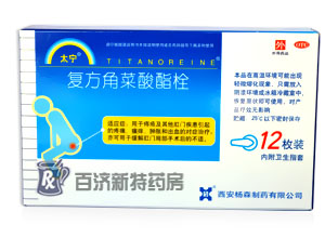 【成份】本品每枚含角菜酸酯0.3克,二氧化鈦0.2克,氧化鋅0.4克。輔料為:滑石粉,固體半合成甘油脂。