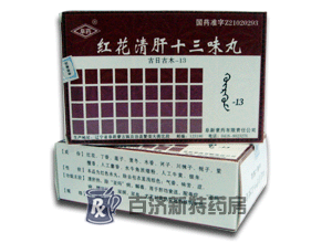 紅花清肝十三味丸為紅色水丸,除去包衣顯淺棕色;氣香,味苦、澀。
