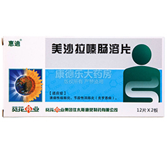 122491 | 惠迪 | 美沙拉嗪腸溶片 | 葵花藥業集團佳木斯鹿靈制藥有限公司 | 0.25g*12片*2板 | 盒 | 39.5 |